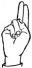На ћирилици написано ИГОР МЕЧАНИН састоји се из 11 слова [?]. Исписано ћириличном једноручном азбуком за глувонеме: